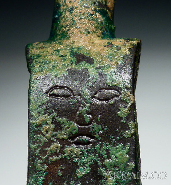Топор-чекан с граффити в виде лица с двух сторон, бронза, 14,3 см. Центральная Азия (фото 4)