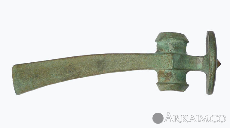 Топор с удлиненным лезвием, фигурной втулкой и чеканом в виде диска (кошидерский тип), бронза, 20,5 см, 16-13 вв. до н.э. Центральная Европа (фото 1)