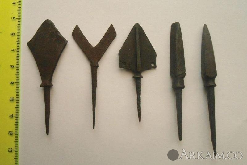 3 - Пятиугольный плоский наконечник с упором и нервюрой, группа 2 тип 1 по Худякову, 6-10 вв., енисейские кыргызы из Минуса