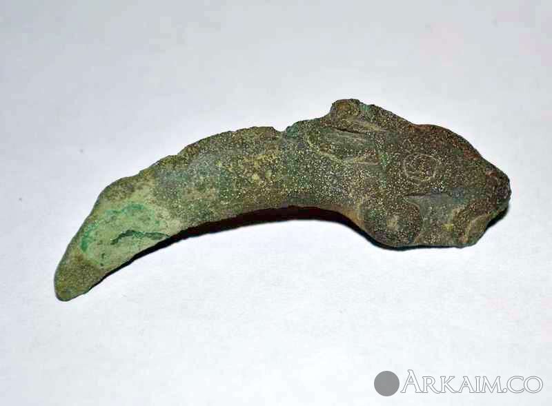 Ременная бляшка в виде клыка переходящего в голову зайца, 5 см. Черкасская обл.