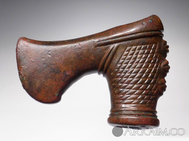 Топор с орнаментированной втулкой и чеканом, 9,5х7 см, бронза, 2 тыс. до н.э. Луристан, Ирак (фото 1)