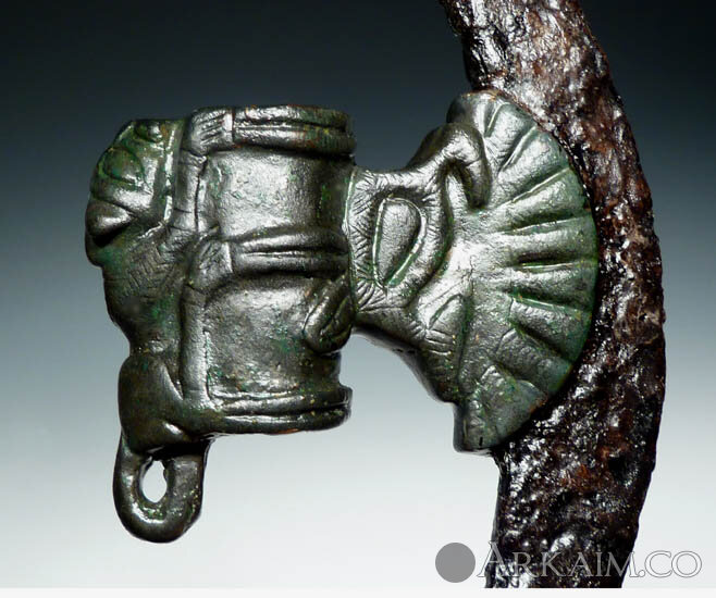 Зооморфный биметаллический топор, 19х9 см, бронза, 13-7 вв. до н.э. Луристан, Ирак (фото 3)