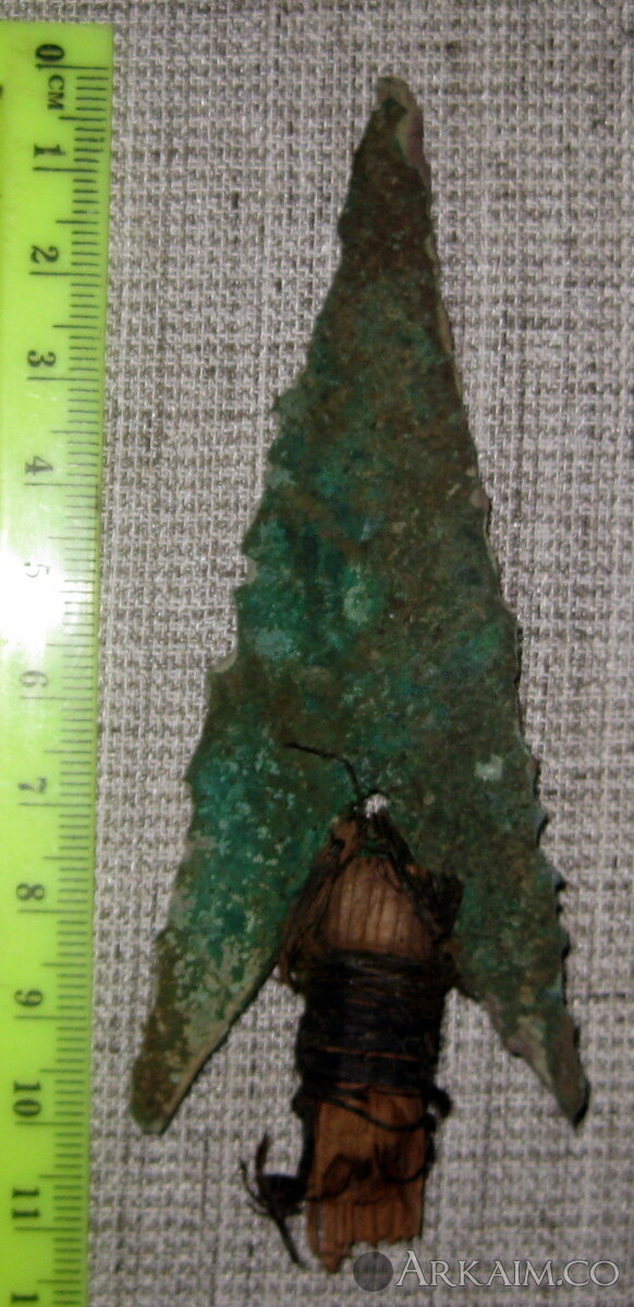 Наконечник площик с остатками древка и обмотки, ритуальный, средневековье. Южная Сибирь