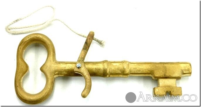 Бородка ключа фигурной формы, стержень полый, выполняющий роль канала ствола. В основании ключа у его головки закреплен подпружиненный серпентин с помощью сквозного винта. Затравочное отверстие расположено напротив головки серпентина. 17 в.
