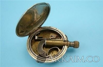 Ддостаточно редкая модель для своего времени, изготовлен в Англии. Калибр 0,3. Внешний вид совершенно не выдает истинного предназначения этой вещи. На внутренней стороне крышки выгравированы инициалы, по всей видимости, владельца этого редкого экземпляра пистолета. Особой убойной силой не обладает, скорее всего, еще один сувенир.