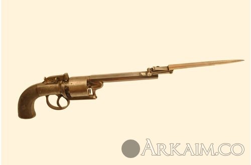 Револьвер капсюльный с откидывающимся штыком. Калибр 10,6 мм. Длина 31,5 см. Середина 19 века. Англия (фото 1)