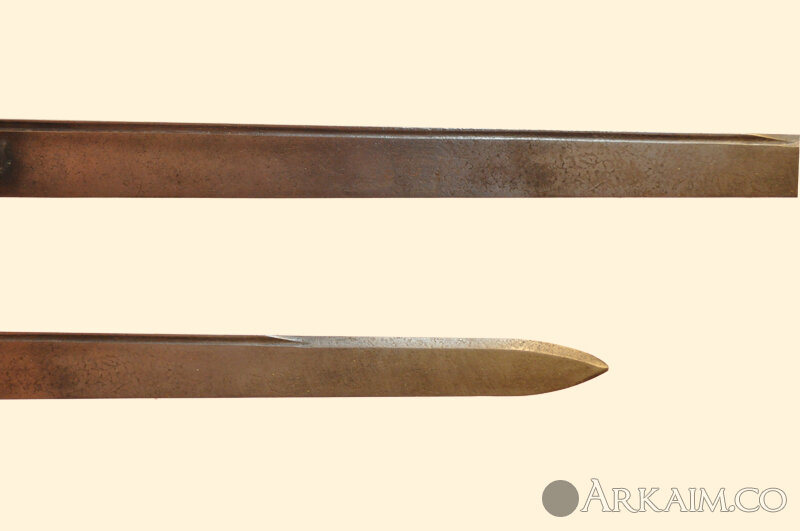 На правой стороне клинка возле рукояти прикреплен ствол с затравочной полкой и крышкой-огнивом. ствол стальной, круглый, в казенной части граненый; отделан в двух местах декоративными поясками. На казенной части ствола сверху квадратная затравочная полка с круглым углублением. Перед полкой прикреплена на поперечной оси стальная крышка-огниво, подпираемая снизу плоской одноперой пружиной. Клинок со стволом упирается в вытянутое стальное перекрестье, за которым на хвостовик клинка насажена рукоять.