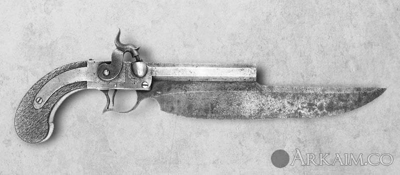 Единственный капсульный пистолет с ножом, изготовленный серийно в количестве 150 штук, в 1833 для флота США, для экспедиции в южные моря.