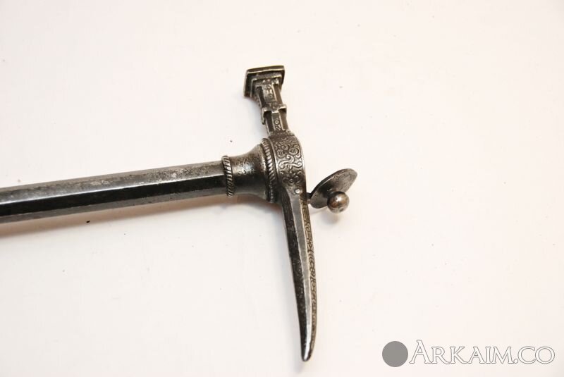 Клевец. Германия (Саксония), конец 16 - начало 17 века. Комбинированное оружие с клинком/пикой (утерян). Украшен орнаментом (фото 3)