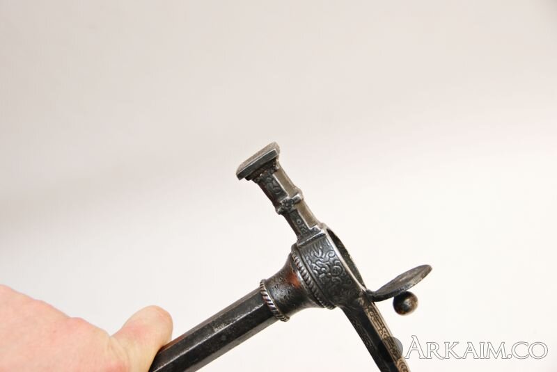 Клевец. Германия (Саксония), конец 16 - начало 17 века. Комбинированное оружие с клинком/пикой (утерян). Украшен орнаментом (фото 5)