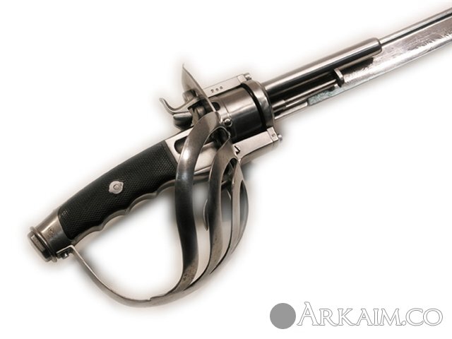 Выдвинутая вперед по отношению к оси сабельного клинка и оси канала револьверного ствола, ось рукояти позволяет бойцу удобно держать оружие при стрельбе, при этом имеющий большое значение в бою баланс сабли практически не ухудшается.