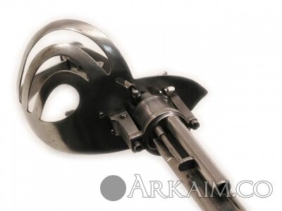 Выдвинутая вперед по отношению к оси сабельного клинка и оси канала револьверного ствола, ось рукояти позволяет бойцу удобно держать оружие при стрельбе, при этом имеющий большое значение в бою баланс сабли практически не ухудшается.