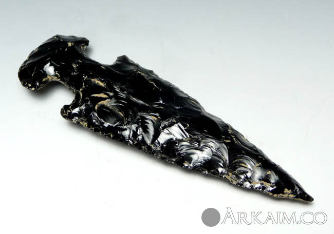 Наконечник дротика, 11,2х3,5 см, черный обсидиан, Доклассический период 250 гг. до н.э. - 900 гг. н.э. Центральная Америка (фото 3)