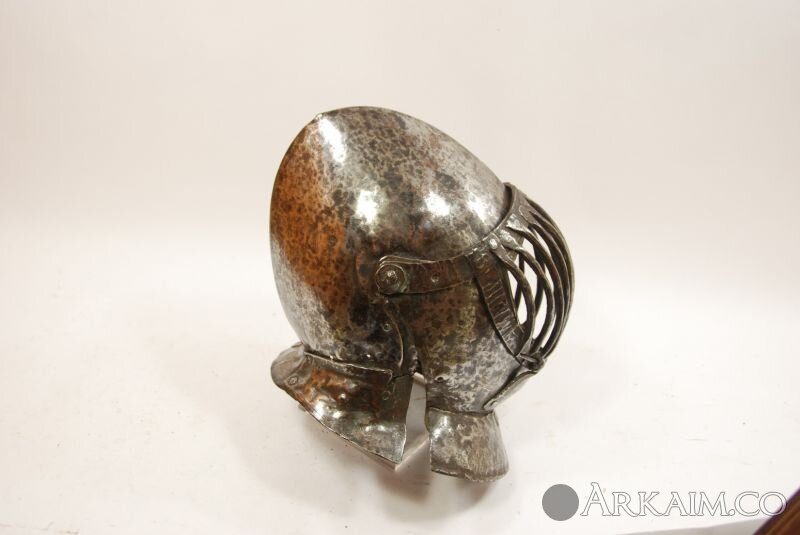 Средневековый итальянский шлем, 16 век, северная Италия. Внутри остатки надписи средневекового периода с каббалистическими символами (фото 2)