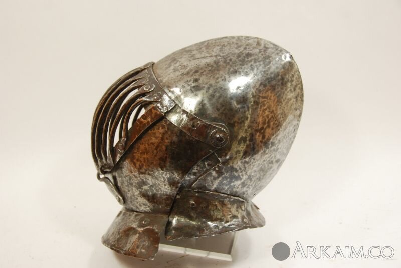 Средневековый итальянский шлем, 16 век, северная Италия. Внутри остатки надписи средневекового периода с каббалистическими символами (фото 4)