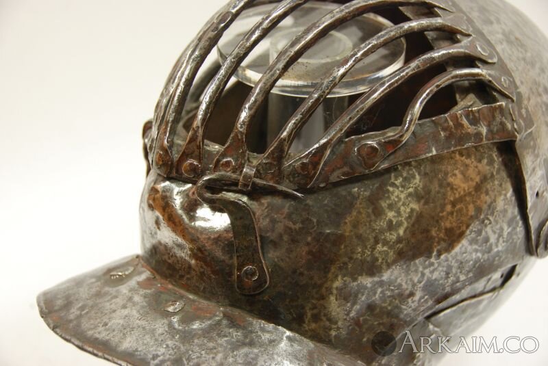 Средневековый итальянский шлем, 16 век, северная Италия. Внутри остатки надписи средневекового периода с каббалистическими символами (фото 5)