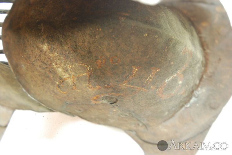 Средневековый итальянский шлем, 16 век, северная Италия. Внутри остатки надписи средневекового периода с каббалистическими символами (фото 7)