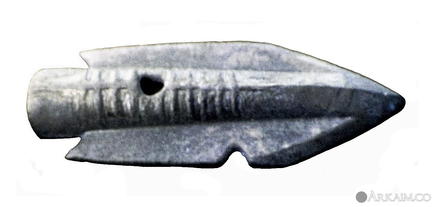 двухлопастной наконечник с рельефными литыми полосками на втулке VIII-VII вв. до н.э.