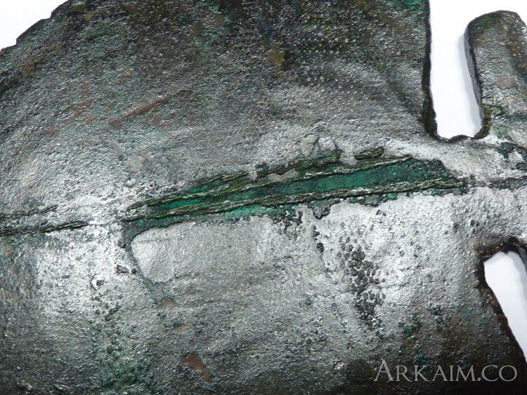 Нож туми (ритуальный или медицинский) со следами минеральных волокон и зубцами для трепанации, 14,5х11,5 см, бронза, 100-800 гг. н.э. Западное побережье Южной Америки (фото 5)