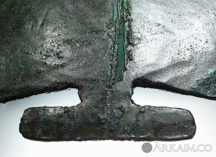 Нож туми (ритуальный или медицинский) со следами минеральных волокон и зубцами для трепанации, 14,5х11,5 см, бронза, 100-800 гг. н.э. Западное побережье Южной Америки (фото 6)