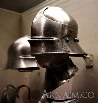 Yorik 88 Опубликовано 16 октября, 2019 Салад или целата был боевым шлемом, который заменил бацинет в Северной Европе и Венгрии в середине XV века. Большинство рыцарей побогаче носили салады с дополненными расширенными пластинами спереди, защищавшими нижнюю часть лица, челюсть и шею, называемые бевор. Бевор может быть сделан из единственной пластины или сформирован из нескольких пластин вокруг шеи и подбородка. Бевор, как правило, носили вместе с саладом, а позже и с некоторыми бургундскими шлемами (бургиньотами), в который бевор был уже встроен в сам шлем, став по сути забралом. В обоих случаях две части брони объединялись, чтобы обеспечить защиту для всей головы и шеи. Большая часть саладов не нуждалась ни в каких вентиляционных отверстиях, поскольку имелся естественный промежуток между самим шлемом и бевором, как раз около рта и носа владельца. Отличительными чертами саладов являются округлая форма и сильно выступающий назад назатыльник шлема, который с течением времени все более удлинялся. Он мог представлять собой монолитную конструкцию со шлемом или прикрепляться отдельно и состоять из нескольких пластин. Забрало у некоторых саладов было подвижным — можно было при необходимости поднимать и опускать его. Активно использовался до 30-х годов XVI в. как рыцарями, так и пехотой, особенно в Германии, когда им на смену пришли бургиньоты и закрытые шлемы.