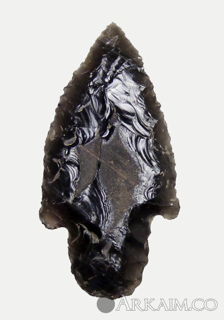Наконечник копья, черный обсидиан, 9х4,5 см, 200-700 гг. н.э. Теотиуакан, Мексика (фото 1)