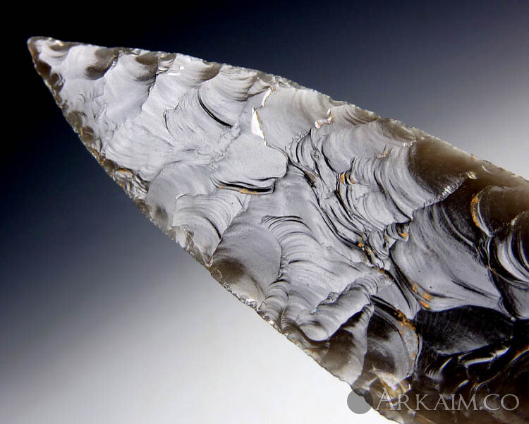 Наконечник копья, зеленый обсидиан, 11,5х3,6х5 см, 200-700 гг. н.э. Теотиуакан, Мексика (фото 4)