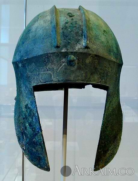 Yorik 88 Опубликовано 16 ноября, 2015 Иллирийские шлемы — первые цельнометаллические шлемы, появившиеся в Древней Греции после «темных веков». По названию местности к северо-западу от Древней Греции (Иллирия), где часто находят такие шлемы, они получили название иллирийских. В музее Аргоса (Греция) хранится шлем конического типа, собранный из нескольких частей. У него заостренная макушка, увенчанная высоким металлическим гребнем в виде дуги. Шлем найден в захоронении VIII в. до н. э. на Пелопоннесе. Такой характерный гребень часто изображался на шлемах ассирийских воинов на барельефах того времени. Форма гребня косвенно указывает на источник возрождения кузнечного ремесла в Элладе. Нижняя часть шлема практически не отличается от форм более позднего иллирийского типа. К VII в. до н. э. бронзовый гребень исчез, как исчезла и восточная конусовидность шлема. В ранних иллирийских шлемах листы бронзы выгибали по форме головы, соединяли внахлест и скрепляли заклепками в местах соприкосновения, в результате на макушке получались продольные ребра жесткости. Потом научились ковать из цельной болванки, но продольные ребра остались как традиция. Простые с виду шлемы напоминают глубокую каску с длинными ушами. Характерной особенностью шлема служат отсутствие наносника, продольные ребра на макушке, крупные треугольнообразные «уши»-нащёчники и прямоугольный вырез для лица. Длинные нащечники прикрывали с боков шею, но сзади она оставалась частично открытой. На музейной пластинке из музея Тиран (Албания) шлемы иллирийских воинов украшены длинными конскими гребнями подобно классическим древнегреческим шлемам. Если добавить массивный наносник, прикрыть шею сзади, придать фигурную форму «ушам»-нащечникам и выгнуть их вокруг лица, то шлем перейдет в разряд коринфских. По крайней мере к VI в. до н. э. шлемы иллирийского типа вышли из употребления в Элладе, вытесненные коринфскими, но производились в ремесленных мастерских Эпира и Иллирии до IV в. до н. э. Судя по монетам македонского царя Пердикки II, иллирийские шлемы были в ходу на территории Македонии во 2-й половине V в. до н. э., их также находят там в воинских захоронениях VI в. до н. э.