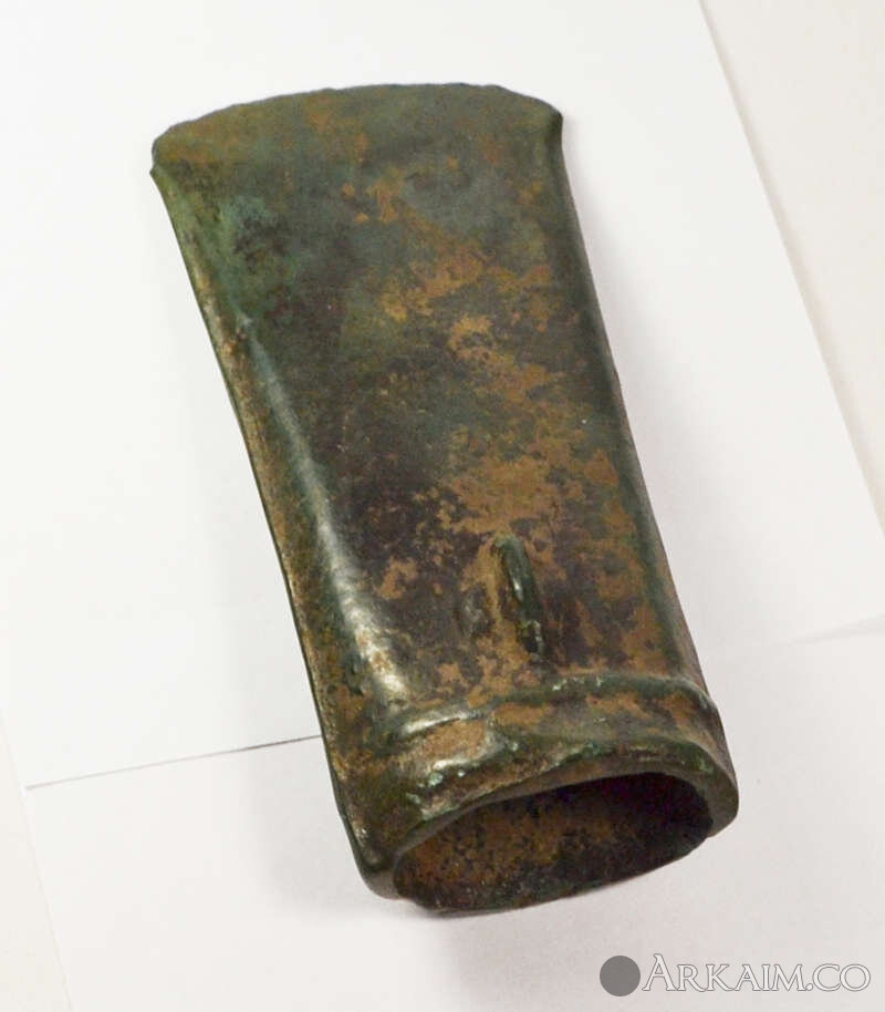 Кельт с лицевым ушком. Длина 9,5 см.Ширина верхнего края 3,6 см.Ширина лезвия 4,5 см. Вес где-то 300 - 350 грамм. Житомирская обл.
