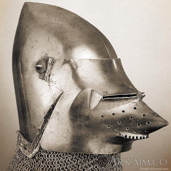 Бацинет с забралом типа «хундсгугель» (нем. «собачья морда»), 14-15 вв. Италия?