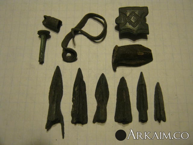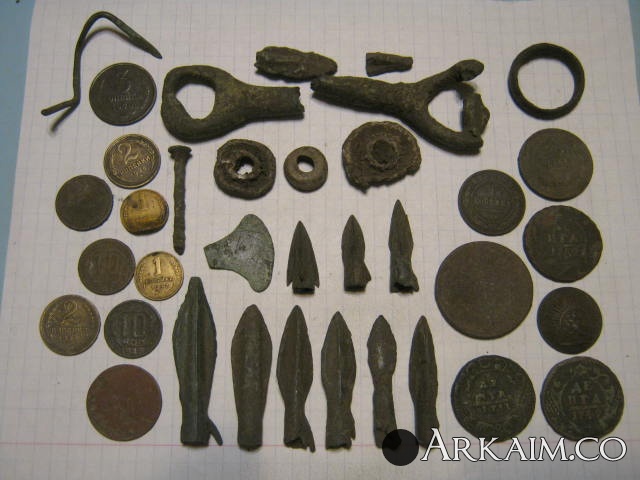 Всем привет.Передают по прогнозу погоды на пять дней дожди.Вчера решили поехать пока не начались дожди.Приехали на луки возле речки.Как закон подлости,сразу начался дождь.Дождь был не сильным и решили,раз приехали,походить.Копков там оказалось не мало.Кто-то до нас порылся не плохо.Сразу попадались цар.монетки.Сохран их не радовал совсем и уже думали уезжать,плюс дождь не прекращался,но потом начали попадаться черняховские предметы.Решили ешё потоптаться.Промочило по полной.Вот мои трофеи.