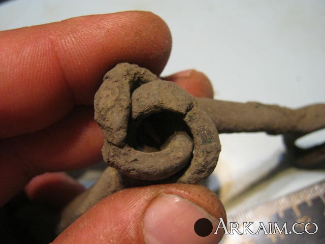 Сегодня поднял вот такое колечко.Материал - ол,бронза,сопутка - скифские наки 7 - 5 в.до н.э.Это амулет,конина или что-то ещё? Какие будут мнения???