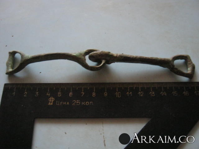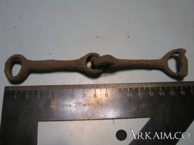 Здравствуйте.Сегодня попалось вот такое удило.Есть по нему вопросик.Оно целое или была ещё и третья часть?Судя по размеру-должно быть целое,да и кольцо на краю большего диаметра чем посерёдке.Мне попадалось целое,но окончание было с обеих сторон стремяобразное.Позже скину фото.