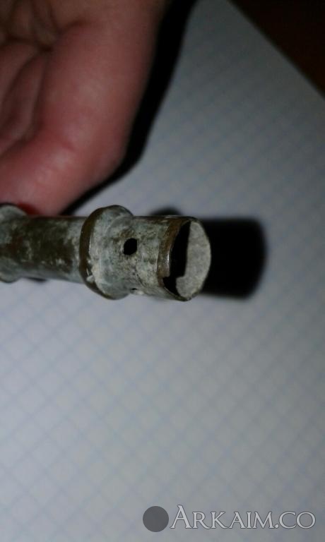 1. Добрый вечер уважаемые форумчане, прошу помочь определить что это такое и к какому периоду это относится? Материал: латунь или бронза. Длина 8см. В верхней части 2 сквозных отверстия крест-накрест. Больше ничего сказать об этом предмете не могу.