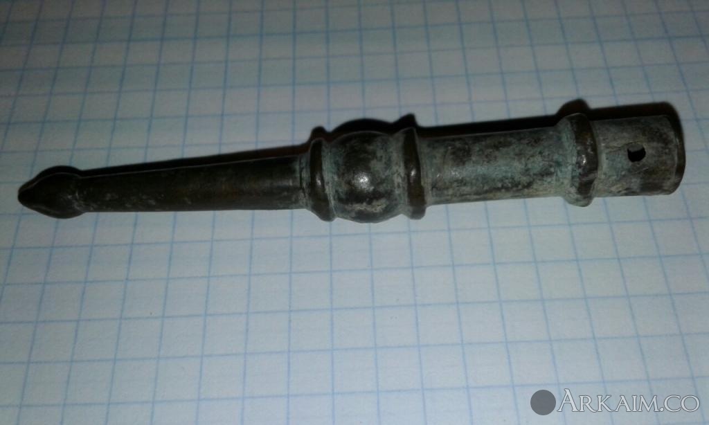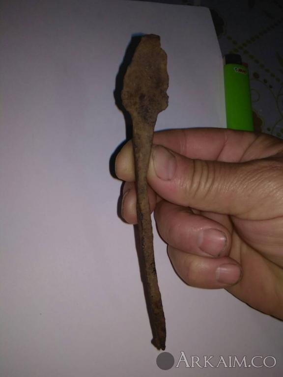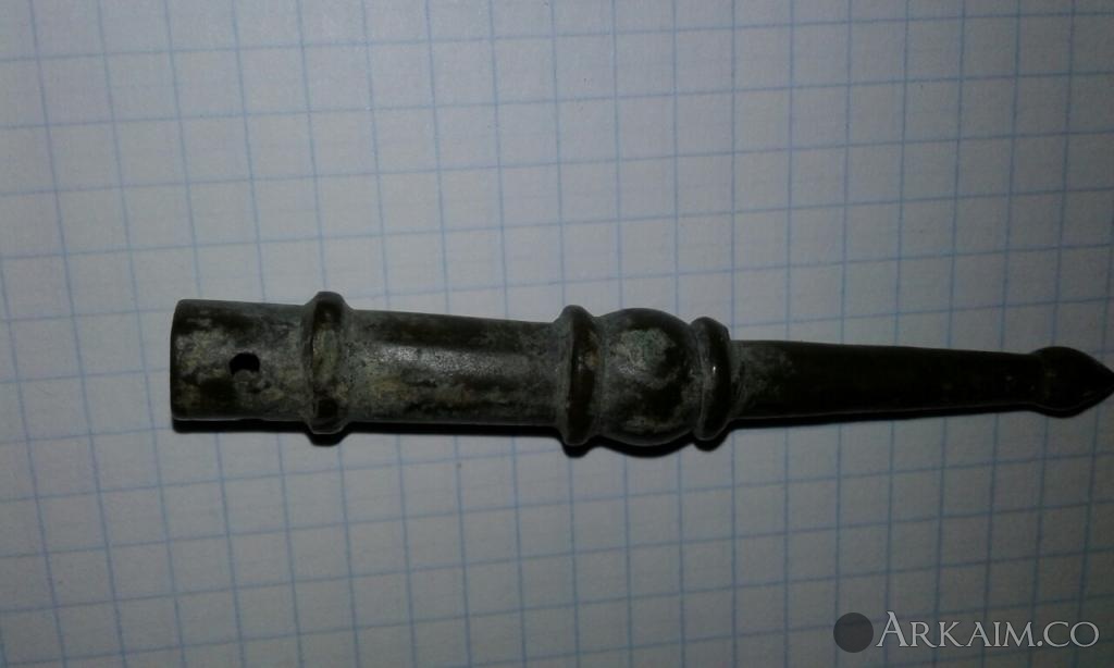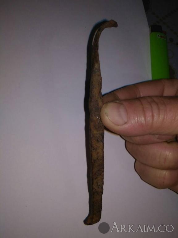 19. Здравствуйте уважаемые форумчане, помогите узнать или определить предмет. Наконечник ли это? Дротик? Или же стрела от лука? Размеры: 150 х 21 мм. На тех местах, где найден предмет стояла орда. И что это за "пупырышек". Помогите пож. разобраться.