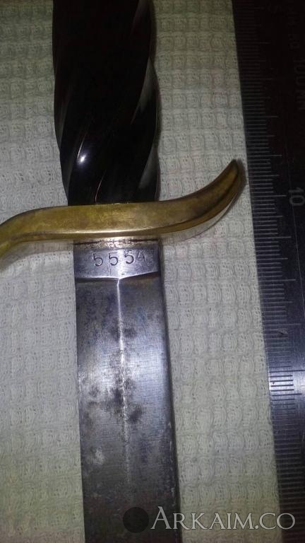 13. Здравствуйте, подскажите определить время, страну, и что это за клинок такой? На одной стороне клинка возле ручки № 5554, на другой стороне № 78965. Ручка витая, гарда латунная с покрытием. Сверху ручки скорее всего неродная верхушка.