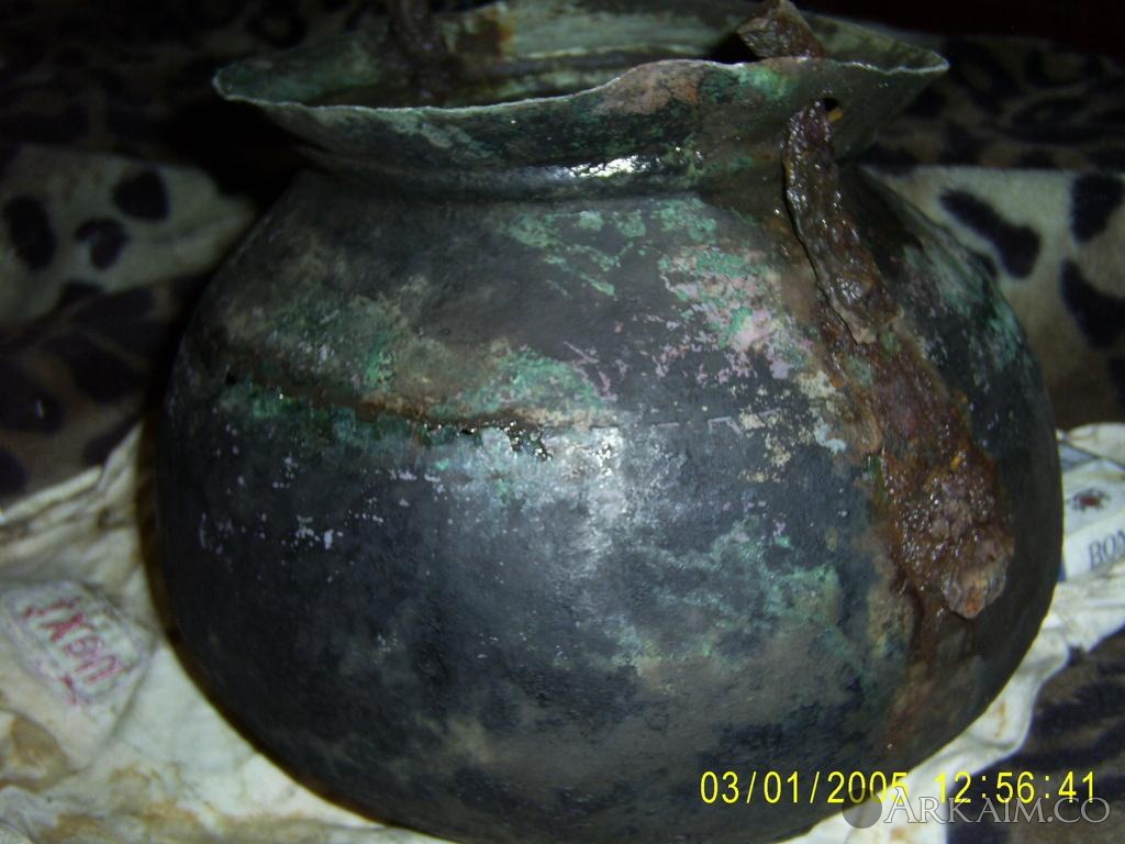 Конечно этот пример не по меди, а по железу.... Да и фото получилось не очень, сделал его в музее: Глиняный тигель сыродутного горна. В раннем средневековье Салтовцы (Хазары) в таких железо делали. Внизу развал с остатками шлаков/крица..... Ну, а детально, найденные шлаки/крицу у себя, я покажу фото чуть погодя.... Сейчас что-то с временем и разъездами... совсем не получается уделить достаточно время... :(