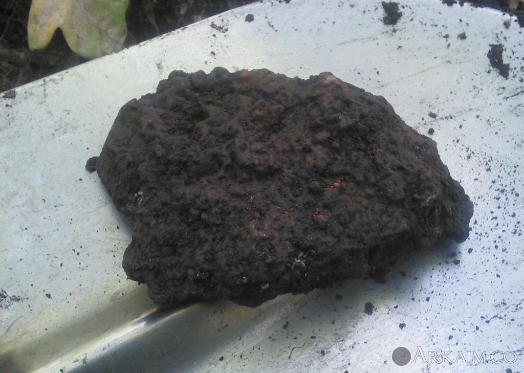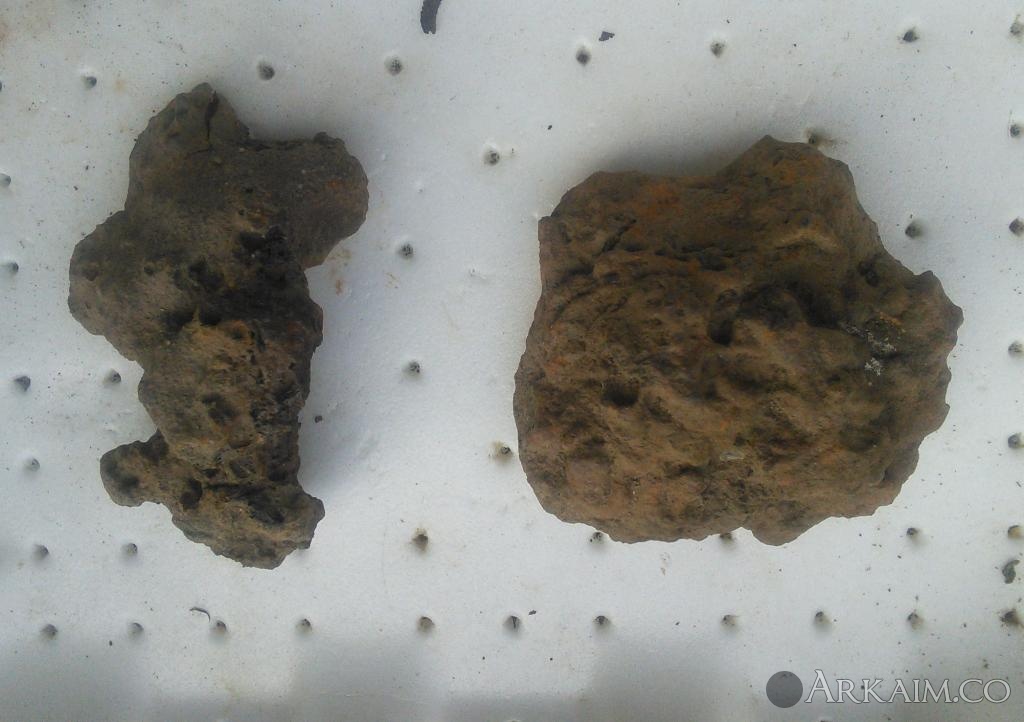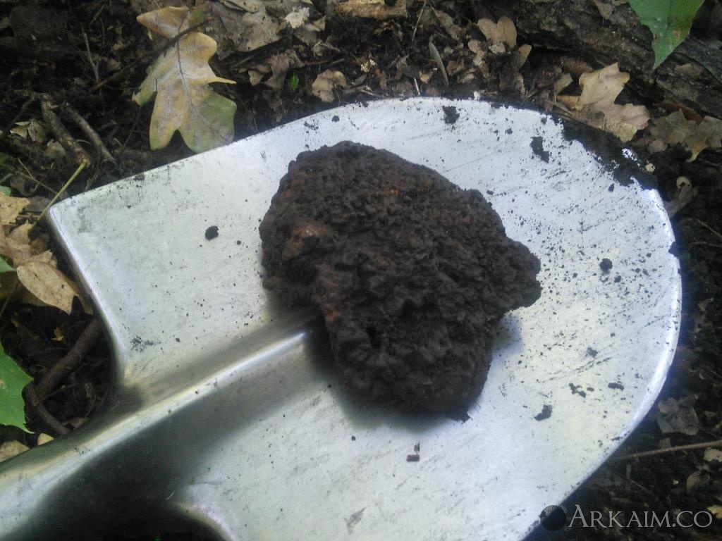 Вот, немного кричного железа.... с места литейки. По первому общему фото, - слева фрагмент (фото 2-3) на половину состоит из шлака. Справа... (фото 4-5) практически исходное сырье (порция кричного железа) после выплавки/выхода из горна. Но почему-то дальнейшей обработки это не получило. забыли, потеряли....
