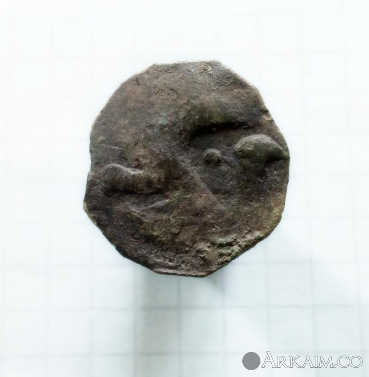 8. Приветствую всех ! Продолжу ;) . Рылся в хабарнице , выбирая с нее весь восток . Решил чуть почистить пулы , взял первый попавшийся под руку . На нем увидел едва знакомый знак , тамгу или ХЗ . В процессе чистки , испортив много инструмента , задобался его точить , стал проявляться рисунок . Теперь пред мной дилемма : остановиться или в бой , а руки так и тянутся :D . Помогите разобраться , что за монета ? Спасибо Всем .