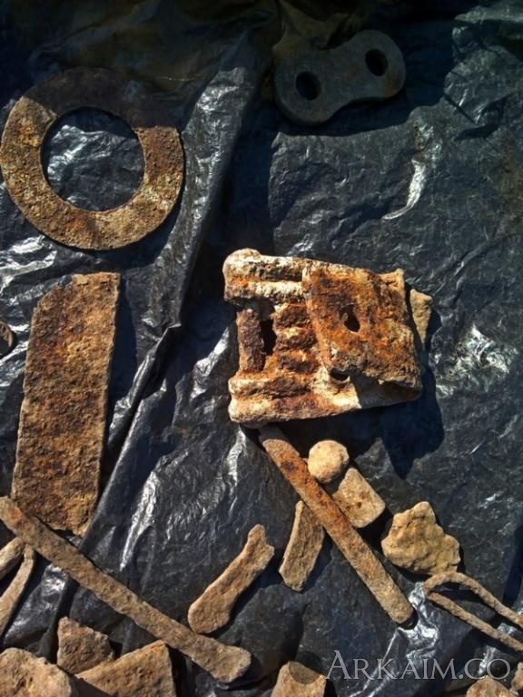 18. Добра ! Из того , что вижу : обломанная булавка (шпилька) , прясло , сердцевина пули (свинец?) , накосник , фрагмент после литья . Все УГ (имхо) .