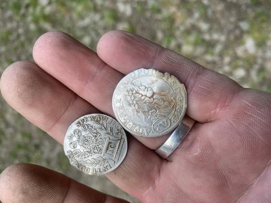 Приветствую Еще одна мечта осуществилась….. ездили в Польшу ….. пляжик у озера , там и выскочила первой что побольше…. Я потом чуть лопату не сломал , ковыряя все сигналы. Австрияки1664;1763 годов За час примерно ДО, местные полисмены подходили ….. типа кроме пляжей ходить нигде нельзя….. ну я и не против , конечно так и ответил . У меня друг в Гданьске , примерно такое, на морском пляже поднял , на окраине, где никто не отдыхает. можно и по пляжам.