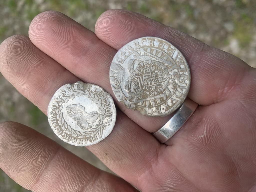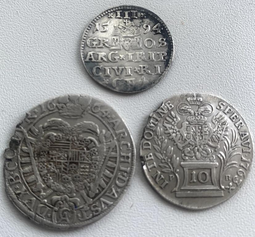Приветствую. Рядом с крейцерами Сигизмунд- это было крайнее серебро, с ним ещё тогда попался полкрейцера но уваленная сильно.