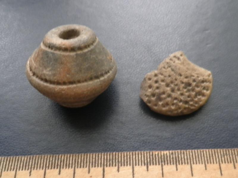 Интересуют мнения по фрагменту с точечным орнаментом. Найден вместе с пряслом и скифскими наками. Полтавщина. Не "хлебец" ли ?