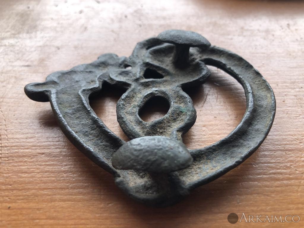 Доброго дня уважаемые коллеги! Всех с Наступающим Новым годом! Побольше Добра, Здоровья и материальных благ! Прошу помочь в определении периода пряжки. Можно ли назвать её - в зверином стиле? Мне видится клювы грифонов. И по словам находчика , рядом нашли бронзовые ножи. Место находки - Казахстан.