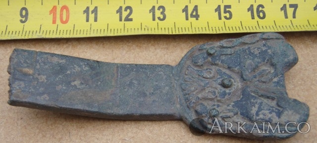 Доброго времени суток! Когда то давно попался, данный фрагмент звериного стиля. Выставлял на обсуждение, так к единому мнению и не пришли. Была версия, ручка от зеркала, но смущает то что края места для хвата не закруглённые а острые, да и мелковато для ручки. Может кому то попадалось, что то подобное, интересно было бы взглянуть на аналоги.