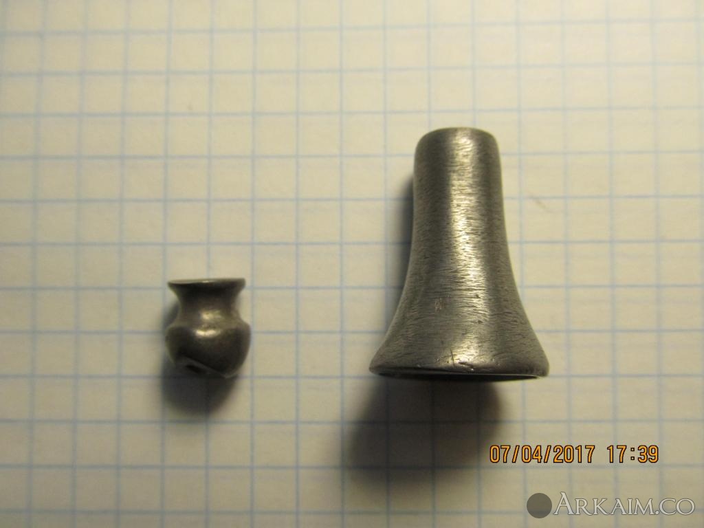 Здраствуйте! Прошу помощи в определении данных предметов.На предмете что в позолоте отверсте под конус 9мм -6 мм. Материал оловянистая бронза, бронза позолота. Сопутка скифы. Заранее всем благодарен. С ув.