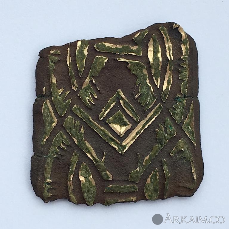 Всім доброго дня . Можливо хтось підкаже по малюнку на бронзовій пластині, зображення ніби дзеркальне, при повороті на 180 градусів виходить подібний немов би один і той самий малюнок.