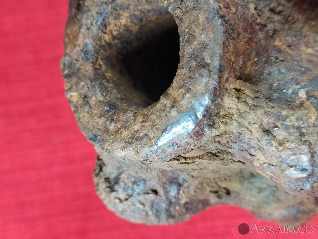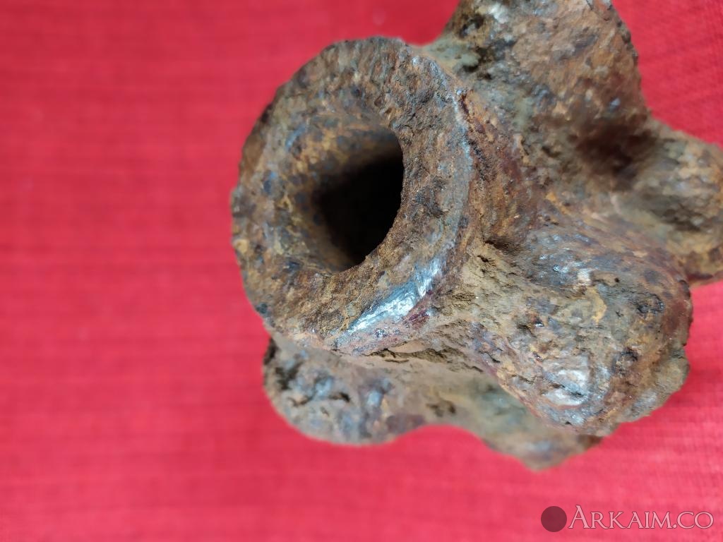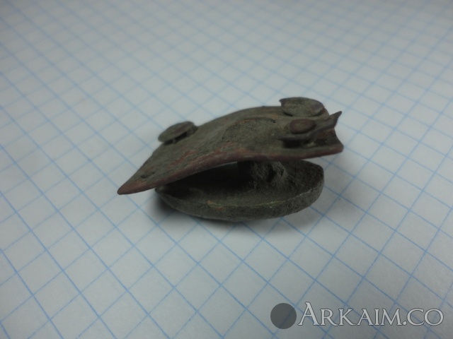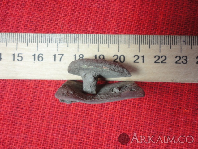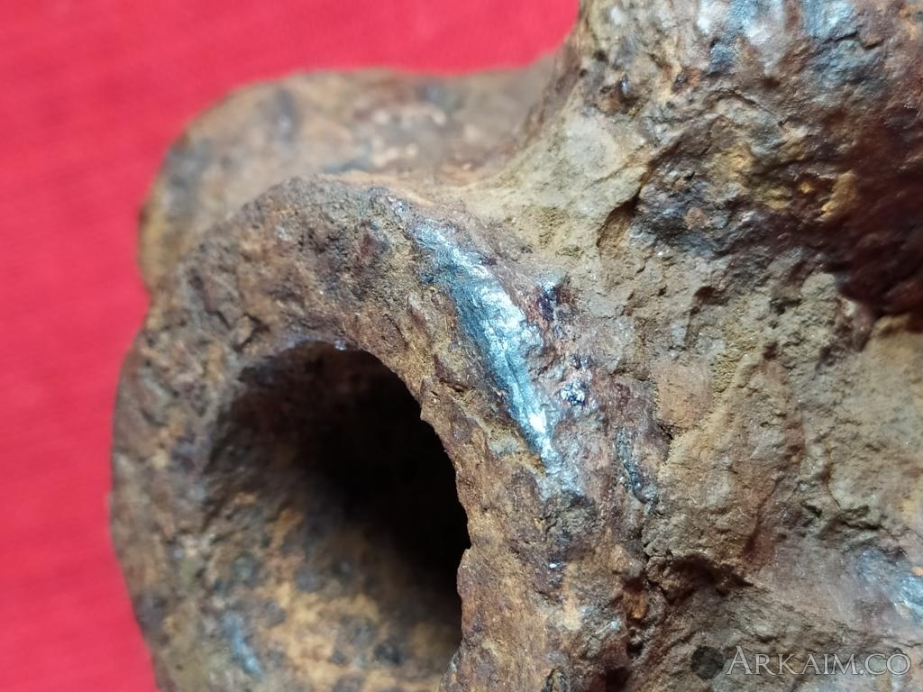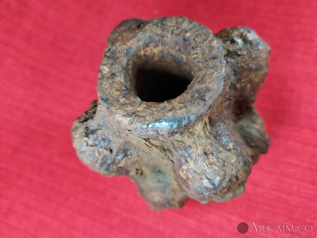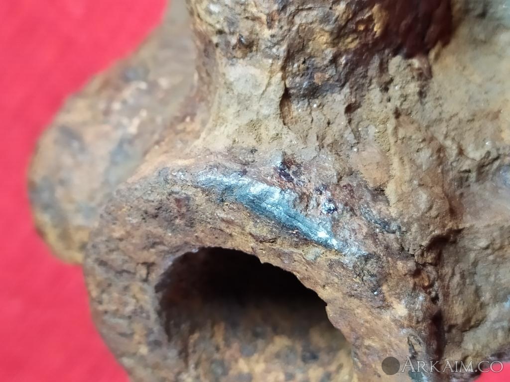 Только один остаток штырьков (литников) ярко выражен,на остальных "шишках" на мой взгляд штырьки возможно были ,но сломаны (спилены,откушены...) и остались только не большие "пеньки " Могу сделать фото каждого выступа ,если здесь можно загрузить видео,тоже не вопрос. Отверстие под древко визуально не конусное ,широкая часть похоже умышленно расплескана с внутренней стороны для увеличения диаметра С уважением