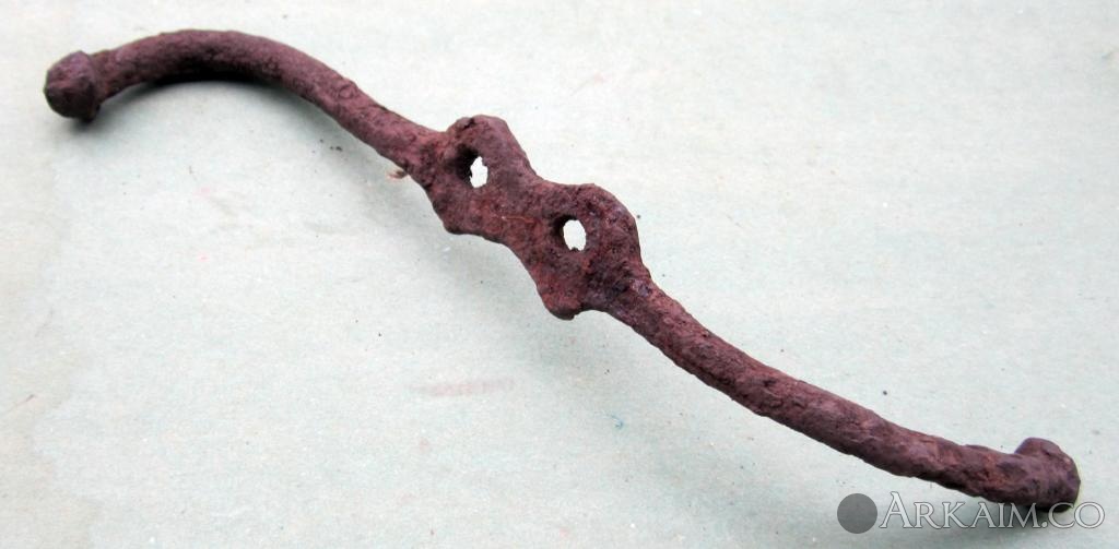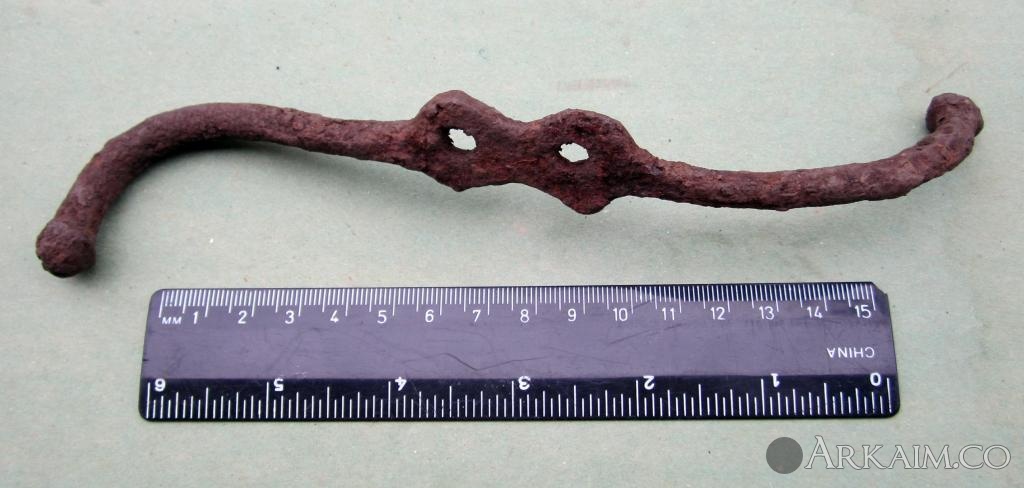 13. Приветствую братов по копу. Подскажите пожалуйста что за предмет. Кольцо подвижно в прямоугольном отверстии. Конец штыря скорее всего обломан и имеет остатки крупной резьбы, похоже, что предмет ввинчивался в дерево. Предназначение не совсем понятно. Обычно для привязи использовали подобные изделия, но там просто штырь с петлей или простым кольцом в нём. В определяемом предмете умышленно заморочились с изготовлением фигурной петли. Не спроста это всё. Петля входит в прямоугольное отверстие в штыре строго в единственном положении и только до середины. В петле , помимо листообразной формы на конце имеется квадратное отверстие со сторонами в 16 мм. Какие будут мнения? С уважением.