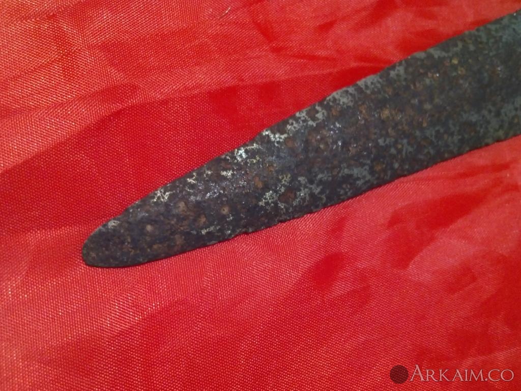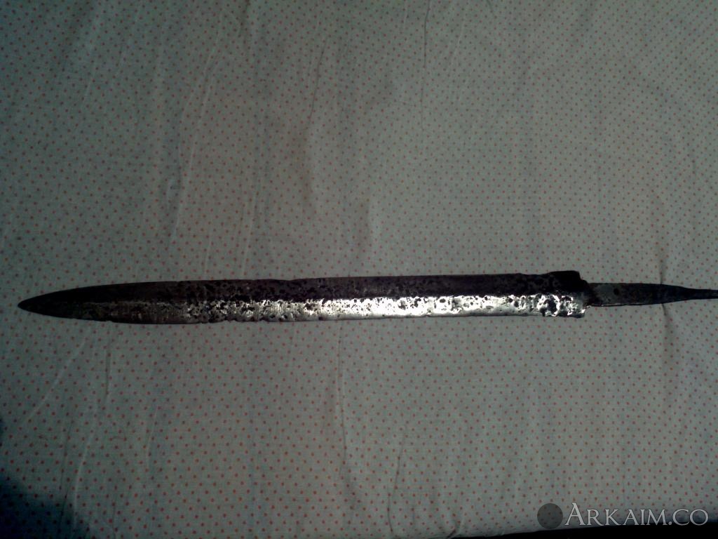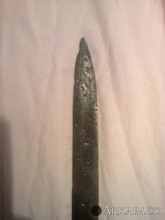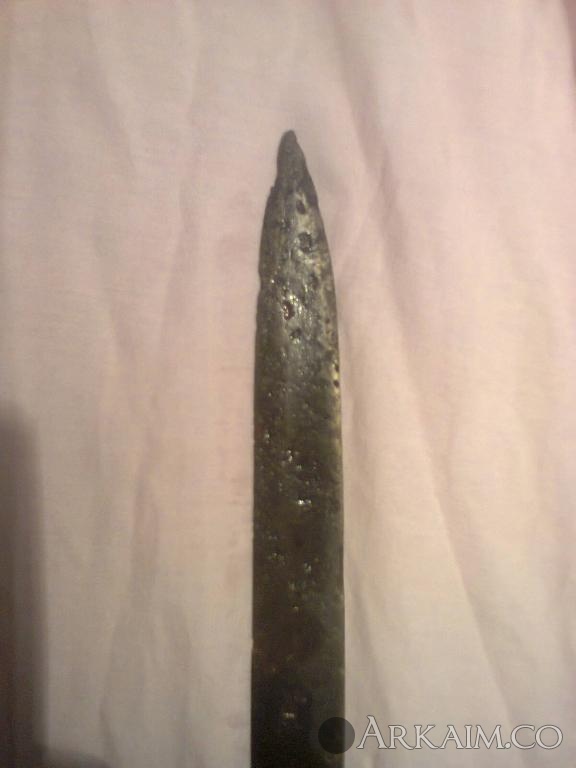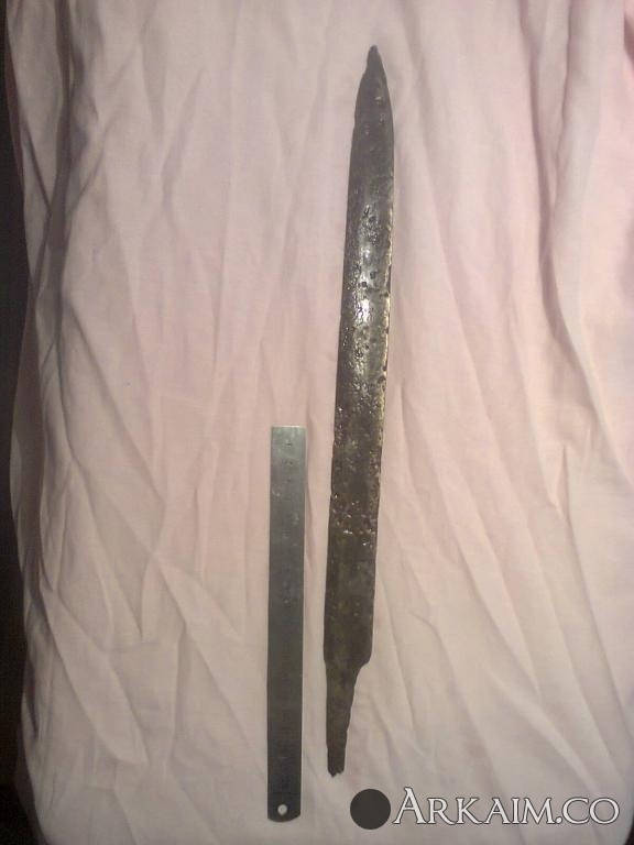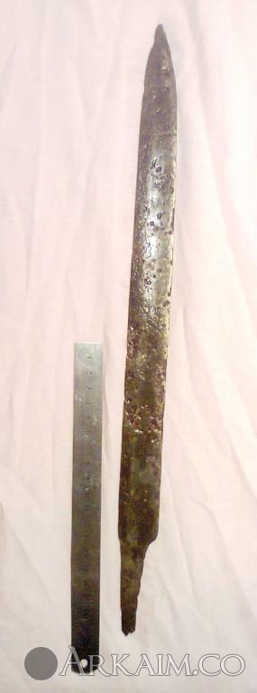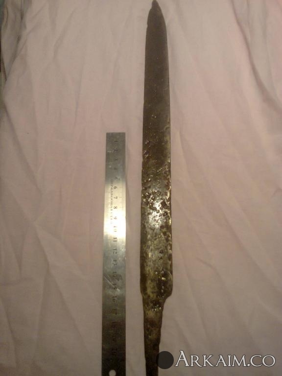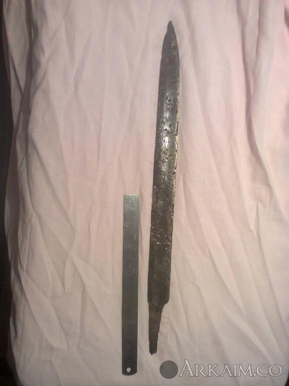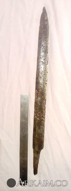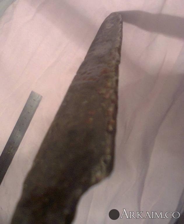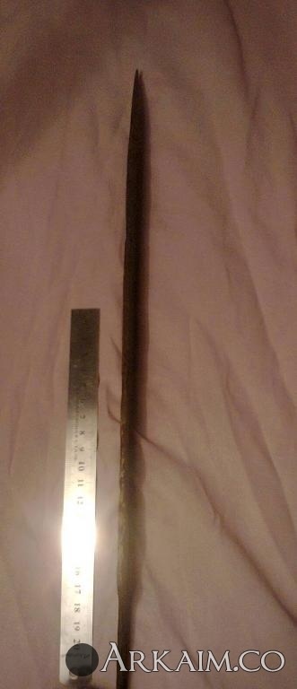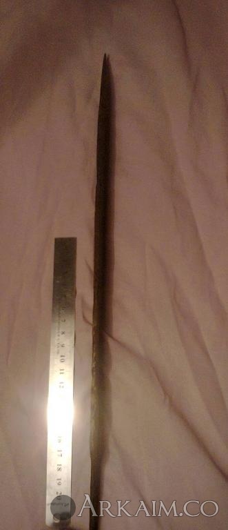 4. Был приобретен. По словам продавца найден в Житомирской области. Сопутка стрелы копья ( тоже не индефецированные) длина 42 см вес 400 грамм!!! Ширина 5см.